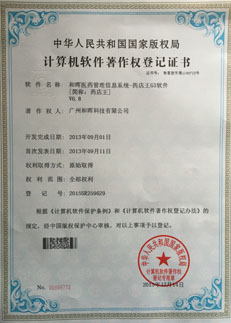 和晖HIS-医院信息管理系统【和晖HIS-本草纲目门诊通】著作权登记证书 | 和晖进销存财管理系统-食全食美《食品版》计算机软件著作权登记证书 |