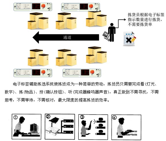 1.利用电子标签拣货,可大大加快拣货速度,提高拣货的准确率,提高拣货效率,降低拣货成本。