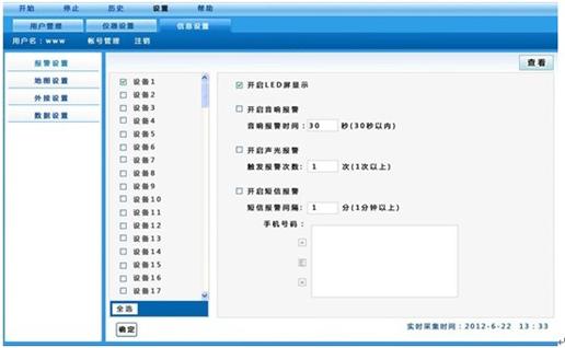 (5)报警设备设置菜单,可设置音响报警的报警。